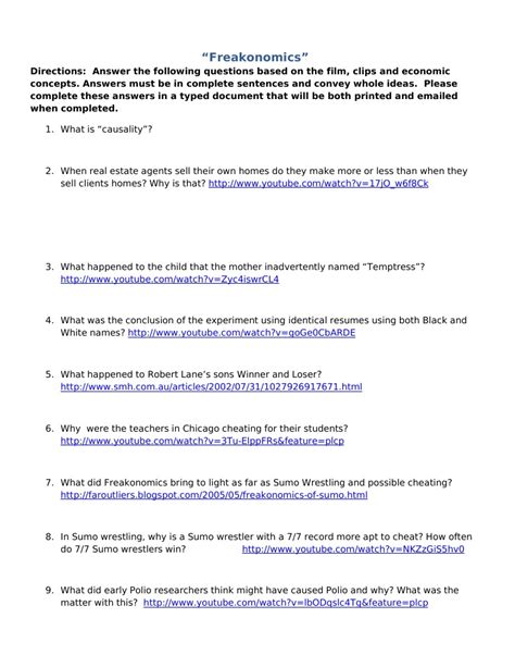 Online PDF FREAKONOMICS MOVIE QUESTIONS Reader